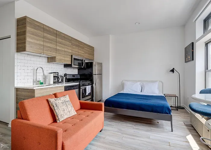 Das Hotel liegt im Stadtteil West Town und in ca. 2 km Entfernung vom Chicago Theatre sowie 2,1 km von Einkaufsmöglichkeiten wie dem Merchandise Mart. Das Hotel liegt 600 Meter von der U-Bahn-Station Chicago und in rund 10 Autominuten Entfernung vom Millennium Park. Zu den nahe gelegenen Sehenswürdigkeiten gehört der Universität von Illinois-Chicago, die sich 2,2 km vom Studio Apartment With Queen Bed Chicago befindet. Die Bushaltestelle Milwaukee & Noble ist in nur 250 Meter Entfernung von der Unterkunft und der Bahnhof Union liegt in ca. 3 km Entfernung von der Unterkunft.